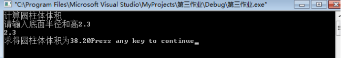 printf("求得圆柱体体积为%.2f",sum);