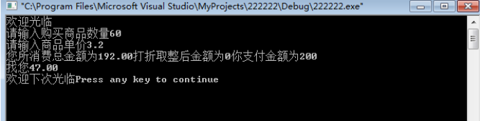 printf("欢迎光临\n请输入购买商品数量");