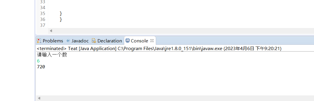 package shangjilianxi; import java.util.Scanner; public class Timu3 { public static void main(String[] args) { // TODO Auto-generated method stub Scanner input=new Scanner(System.in); System.out.println("请输入一个数"); int a=input.nextInt(); int sum=1; while(a>=1) { sum*=a; a--; } System.out.println(+sum); } }![]()