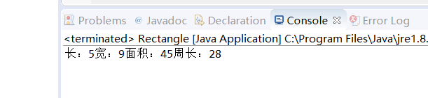 System.out.println("长:"+length+"宽:"+width+"面积:"+getarea()+"周长:"+getper());