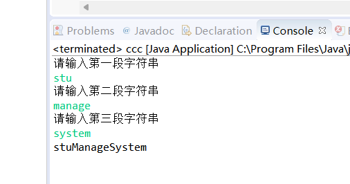 System.out.println(string0 + string1 + string2 + string3 + string4 + string5);
