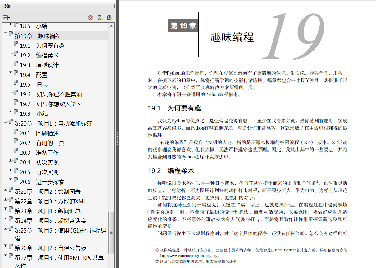 很多编程书籍,都是简单的将语法给你过一遍就算了,但是这本书,除了讲述语法和介绍应用库之外,还手把手教你开始真正使用python写程序,教导你完成几个project,免去了经常要问的的“学完了一门语言之后,可以做什么”之类的疑问;从project中,也可以真正领略python的魅力所在。学习一门编程语言的最好方法就是真正使用它——这本书算是真正实践了这句话。