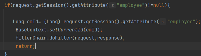 BaseContext.getCurrentId()这里的id需要在LoginCheckFilter中设置