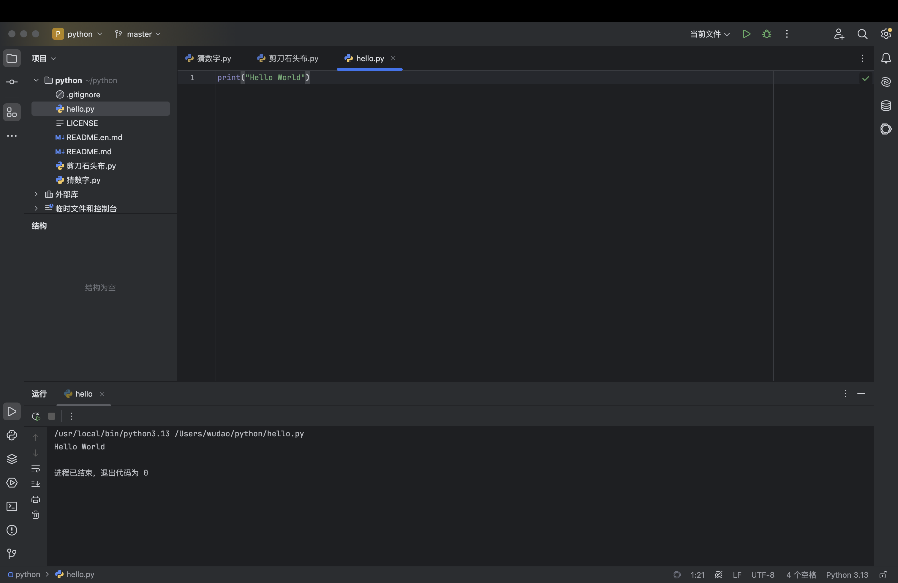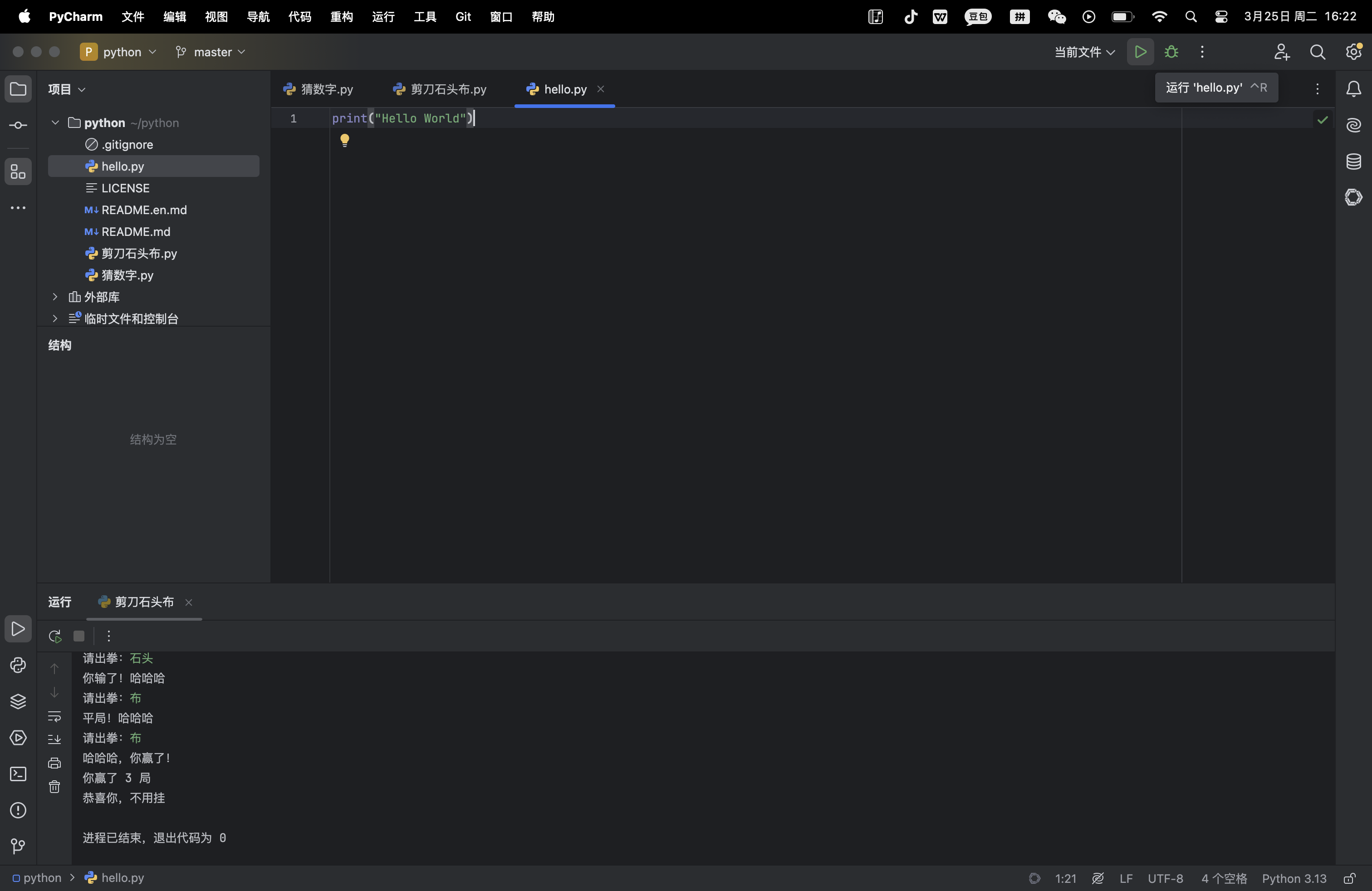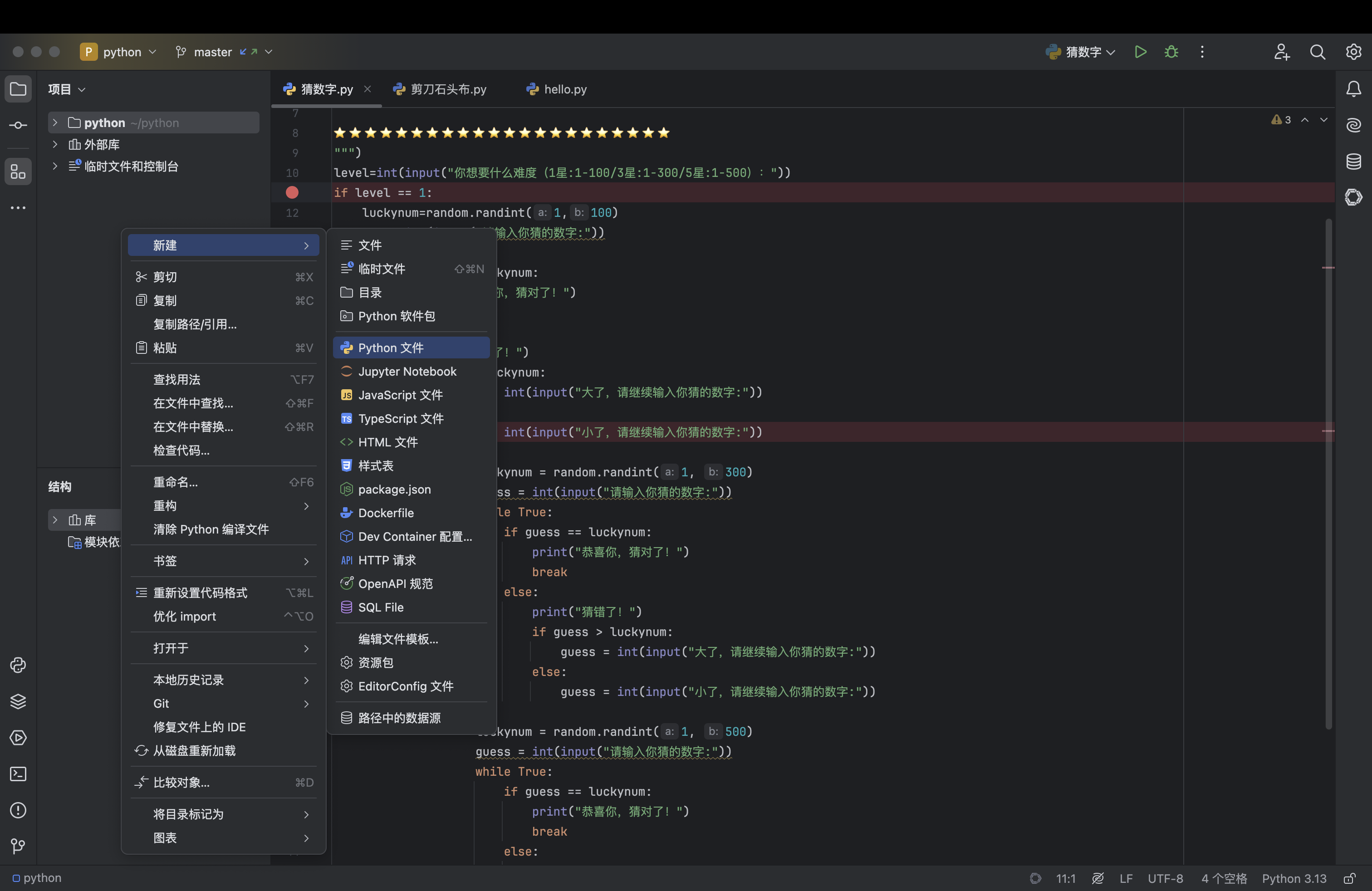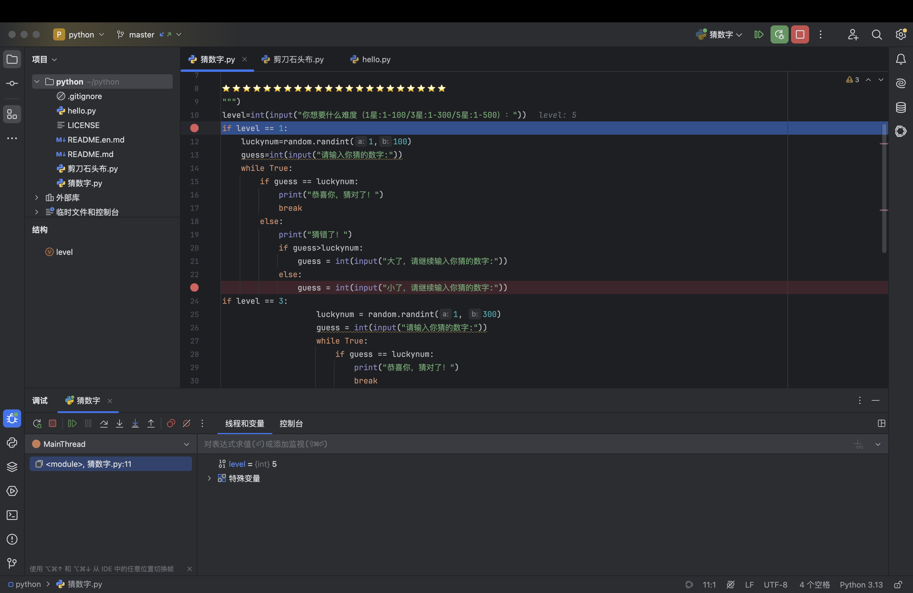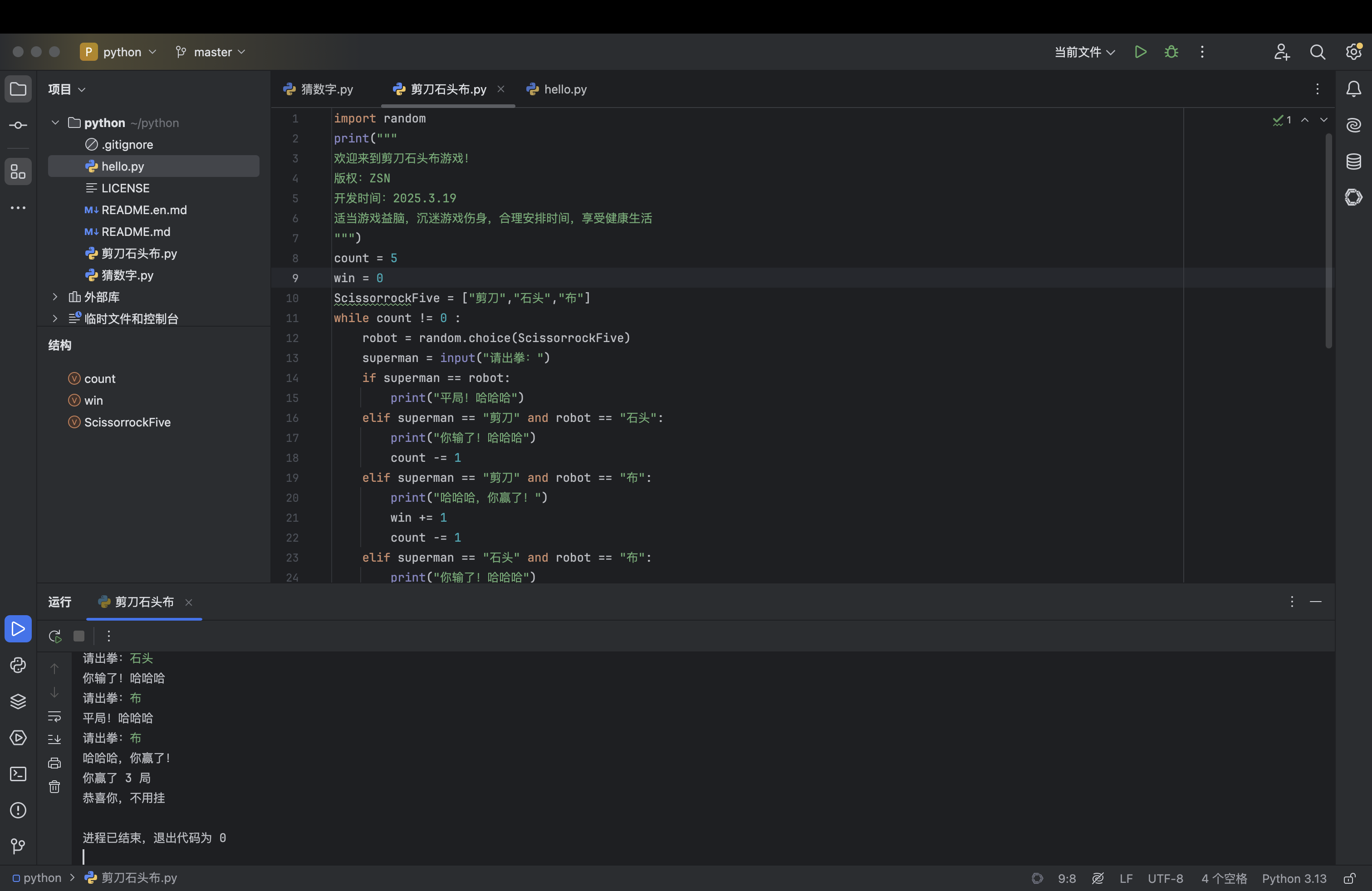(三)编写程序,练习变量和类型、字符串、对象、缩进和注释等;(编写一个猜数字或者剪刀石头布的游戏)