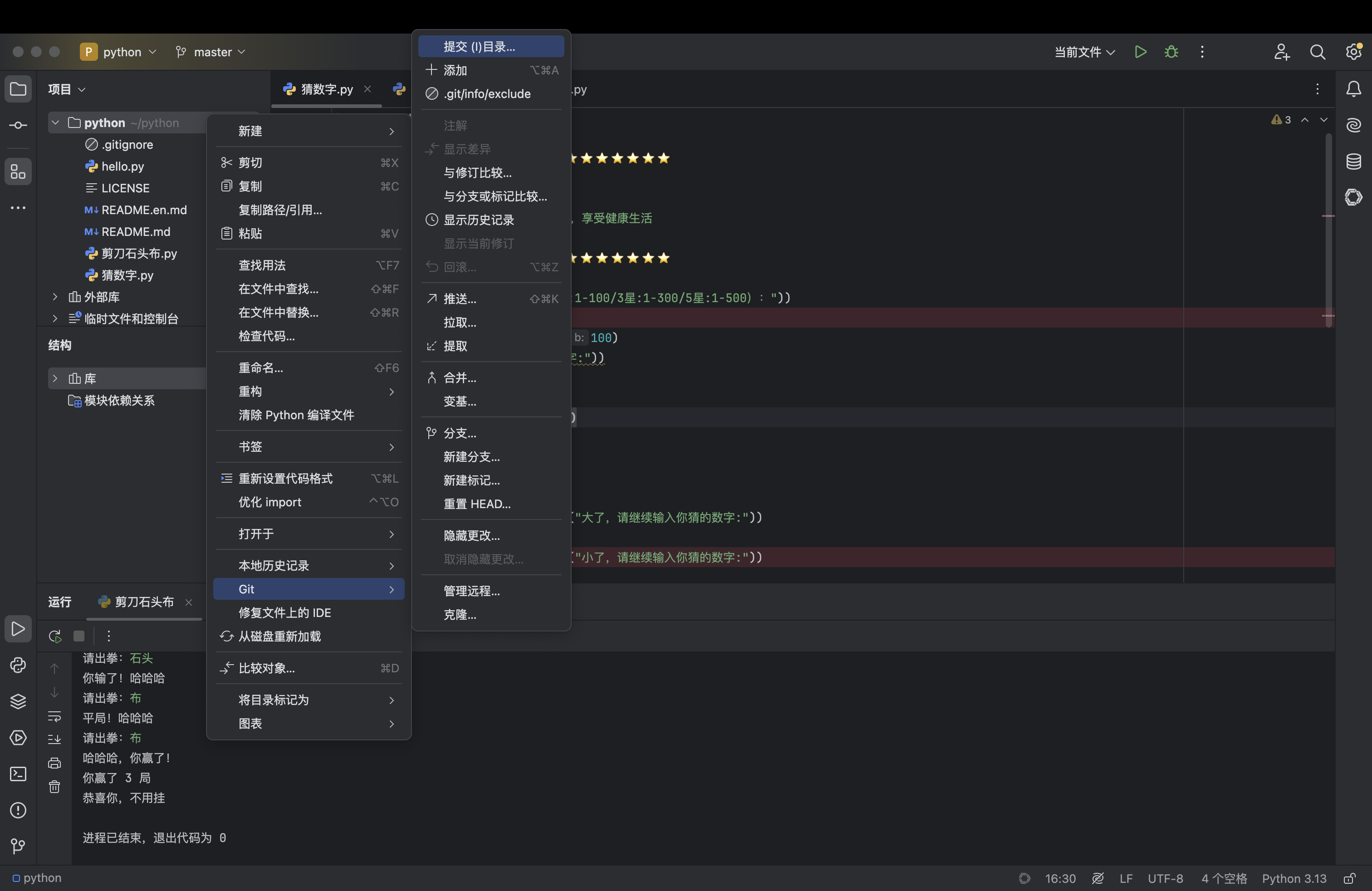 2.在PyCharm中点击文件夹右键,选择“Git”,选择“提交目录”