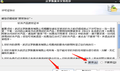 步骤3:在安装和使用 DM 之前,该安装程序需要用户阅读许可协议条款,用户如接受该协议, 则选中“接受”,并点击“下一步”继续安装;