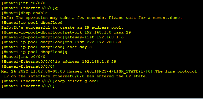 然后通过DHCP服务器使用命令:dis ip pool name dhcpflood used 查看dhcp地址池使用状况