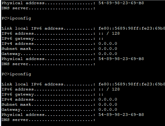 先停用pc机的dhcp功能,然后开启,结果pc机不能获得ip地址,仅仅一秒不到的时间: