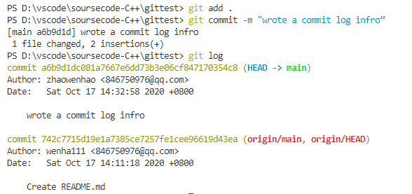 还可以通过git log命令查看提交记录。