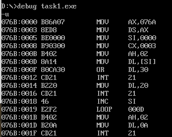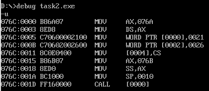 对源程序进行汇编、链接,得到可执行程序task2.exe。使用debug调试,观察、验证调试 结果与理论分析结果是否一致。