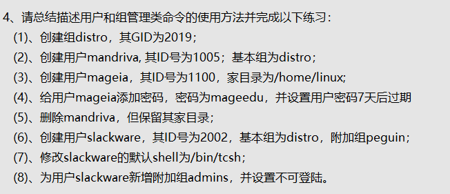 (4)echo 'mageedu' | passwd -x 7 --stdin mageia