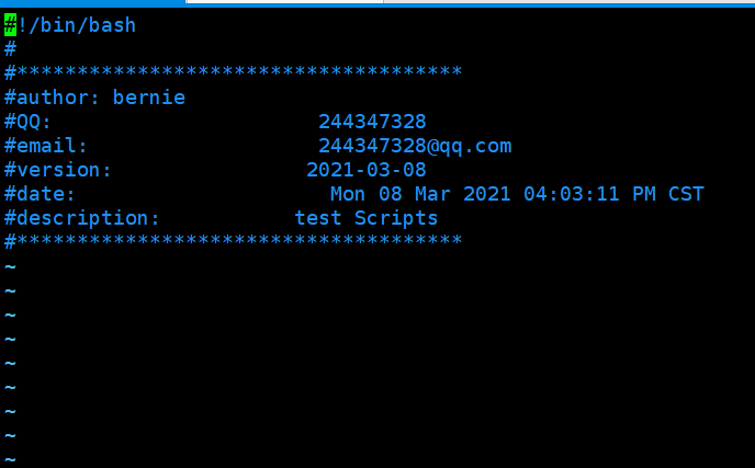 2、编写生成脚本基本格式的脚本,包括作者,联系方式,版本,时间,描述等