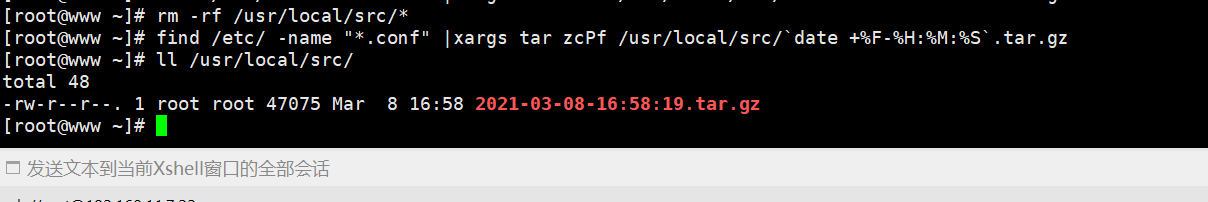 4、打包/etc/目录下面所有conf结尾的文件,压缩包名称为当天的时间,并拷贝到/usr/local/src目录备份。