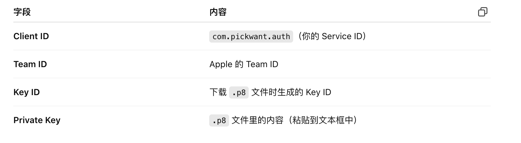 创建一个新的 Sign In with Apple 密钥(Key)。