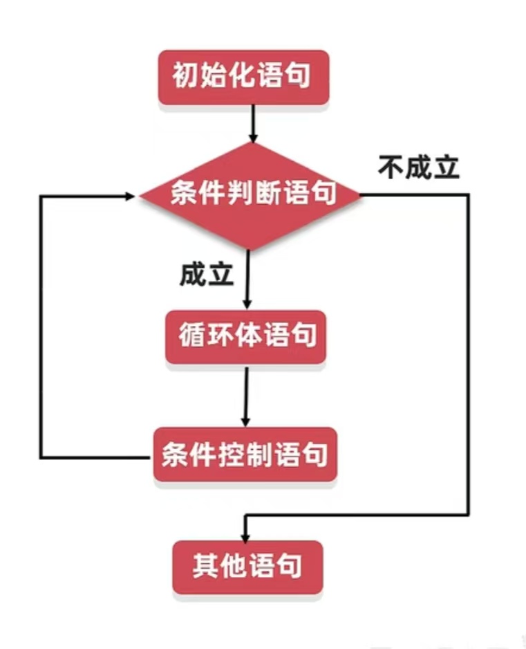 for(初始化语句; 条件判断语句 ; 条件控制语句)