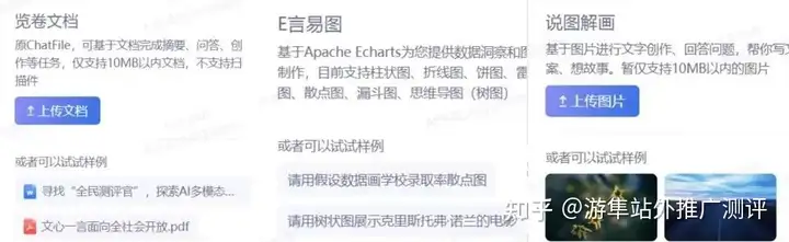 - 阅卷文档:原chatFile,上传文档后,可提问,创作