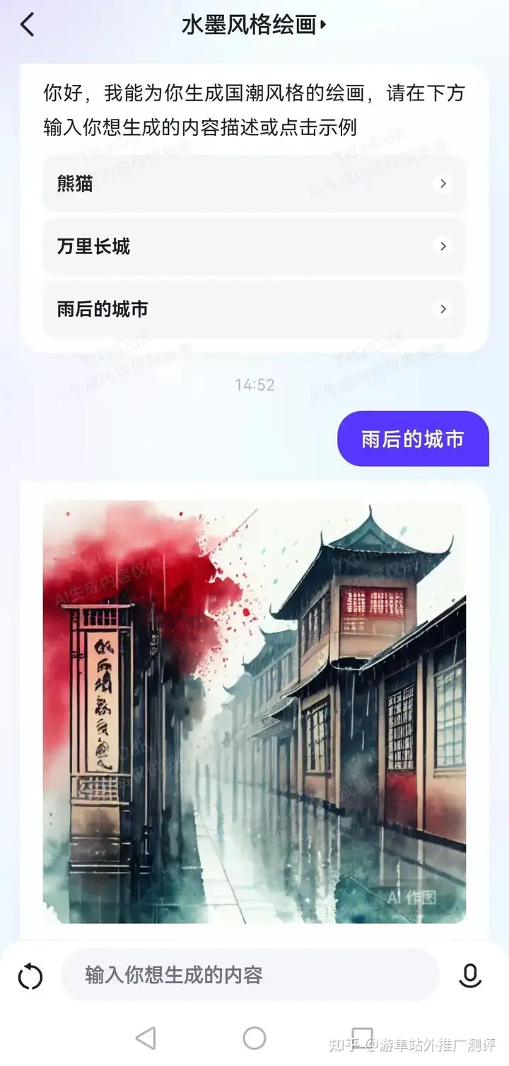 在"发现"板块,直接用 “水墨风格绘画”,画出来的图,还是不错的。