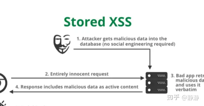 XSS攻击就好比攻击者在某网页论坛中回复一个帖子,帖子中包含JS脚本,回帖提交服务器后,就会存储至数据库。