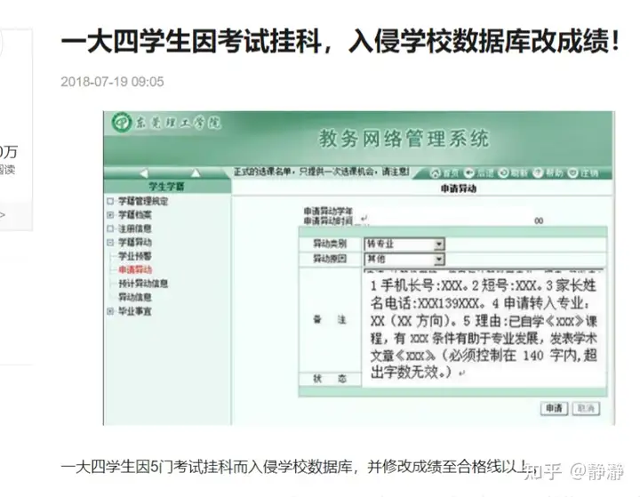 比如某大学学生通过SQL注入篡改期末成绩,某男子入侵某网站窃取大量用户信息等等