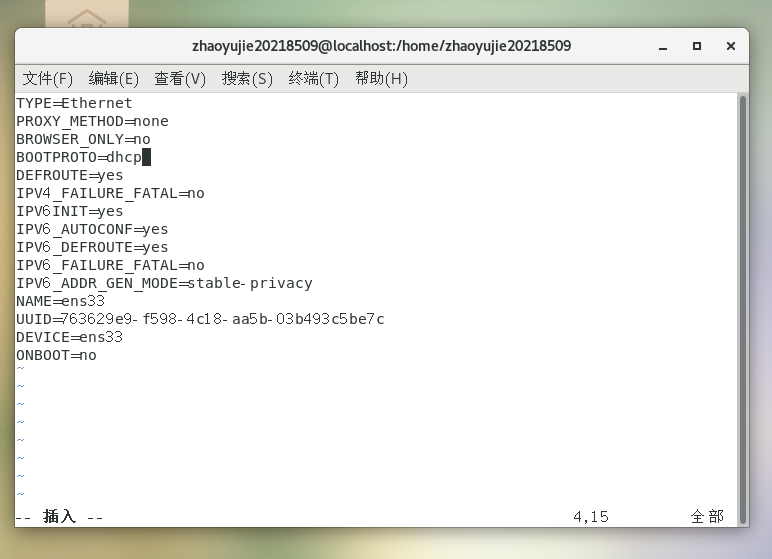第四行:BOOTPROTO=dncp 改为 BOOTPROTO=static;