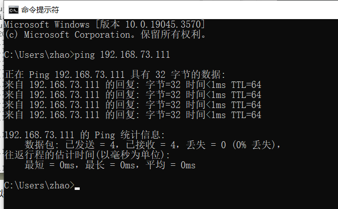 主机cmd终端处ping虚拟机ip