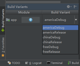使用AndroidStudio配合gradle,可以很方便的输出多个渠道包,只需要在app Module下的build.gradle中,对productFlavors领域进行配置即可,假设我当前开发的项目,需要上线不同的地区,一个是国内版,一个美国版,还有一个免费版,那么gradle可以这么配: