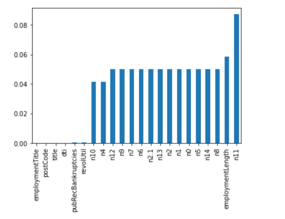 超过5%异常点的特征列为= {'employmentLength': 0.05849875, 'n0': 0.0503375, 'n1': 0.0503375, 'n2': 0.0503375, 'n2.1': 0.0503375, 'n5': 0.0503375, 'n6': 0.0503375, 'n7': 0.0503375, 'n8': 0.05033875, 'n9': 0.0503375, 'n11': 0.08719, 'n12': 0.0503375, 'n13': 0.0503375, 'n14': 0.0503375}