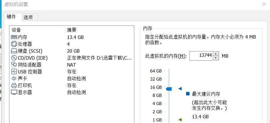 VMVare 建议是13G, 于是我就给到了13G再试试!