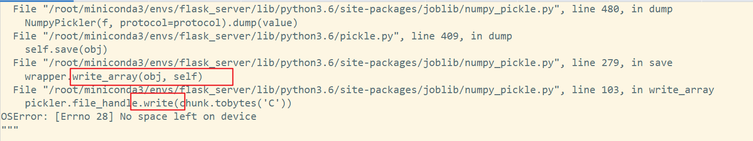 细看是:OSError: [Errno 28] No space left on device