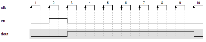 明德扬的波形,默认的情况下都是同步信号,这意味着en和dout都是由D触发器产生的。
