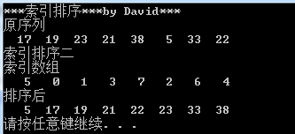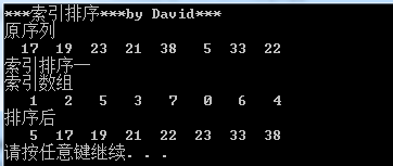 二、index[i]为位置i上终于应存放元素的下标。即终于元素按array[index[0]]、array[index[1]]……有序。