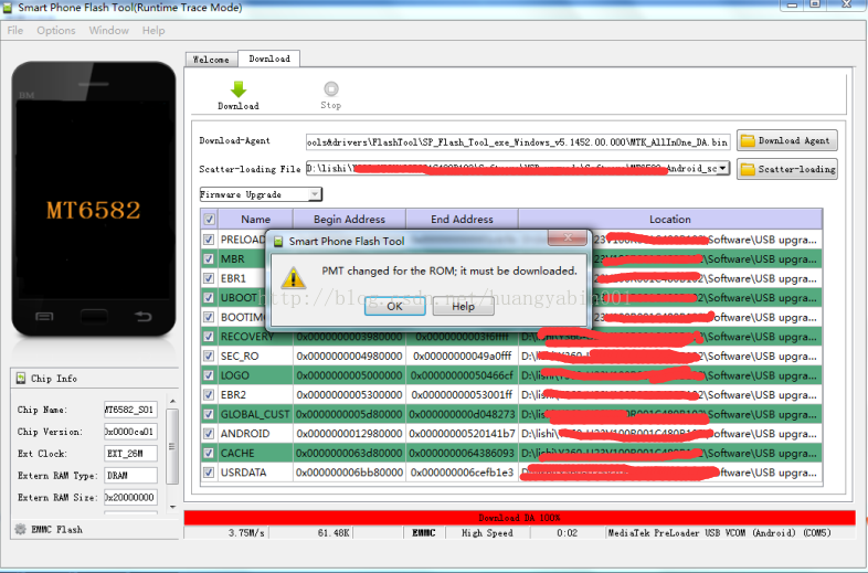 同样项目不同版本号(不同分支),使用Smart Phone Flash Tool工具交叉升级,出现PMT changed for the ROM;it must be download.