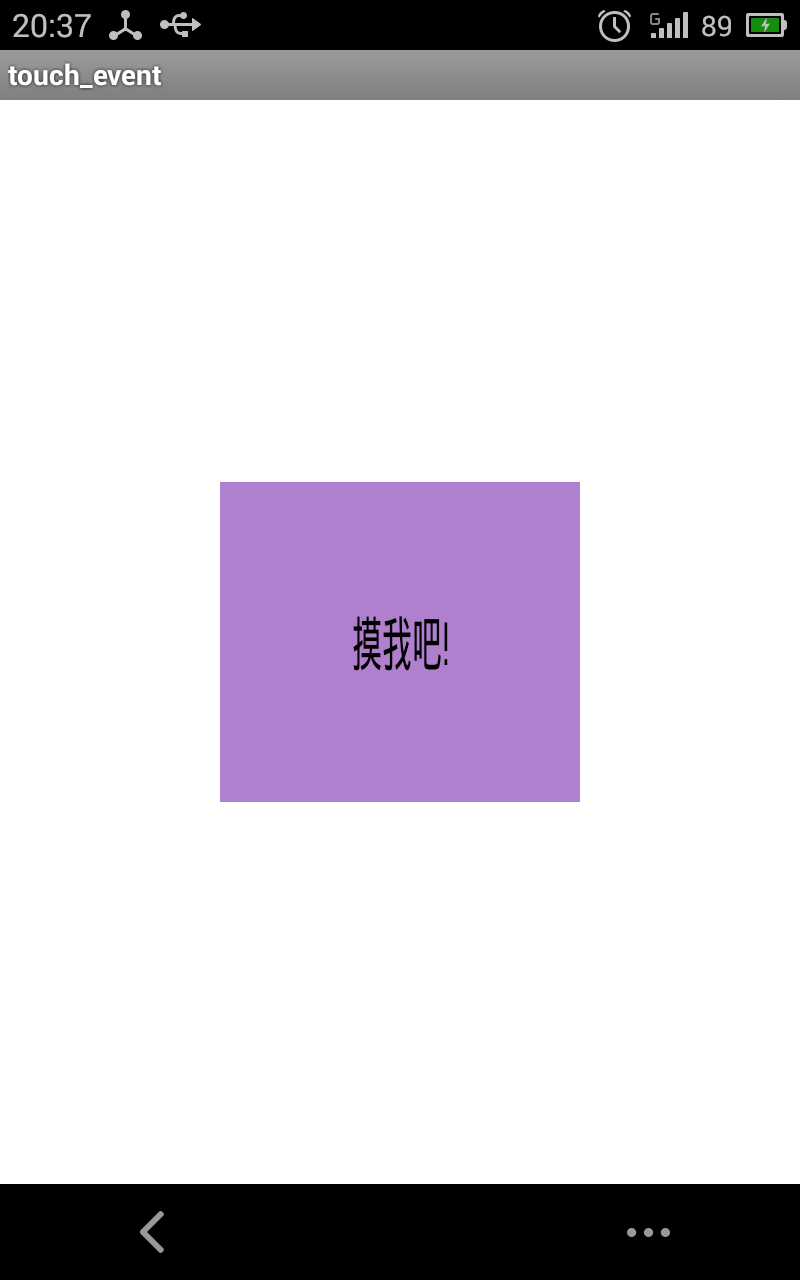 <myview.TouchLayout xmlns:android="http://schemas.android.com/apk/res/android" xmlns:tools="http://schemas.android.com/tools" android:id="@+id/container" android:layout_width="match_parent" android:layout_height="match_parent" android:layout_gravity="center" tools:context="com.example.touch_event.MainActivity" tools:ignore="MergeRootFrame" > <myview.TouchTv android:id="@+id/my_button" android:layout_width="match_parent" android:layout_height="160dp" android:layout_gravity="center" android:layout_margin="20dp" android:background="#00aa00" android:gravity="center" android:text="@string/hello_world" android:textSize="30sp" /> </myview.TouchLayout>