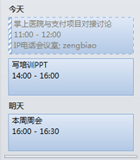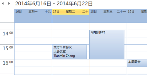 - 自我任务和时间管理:通过会议、事件等在日历中的管理。个人能够明白自我的任务安排,提高时间管理的效率,如在Outlook中会有以下的效果: