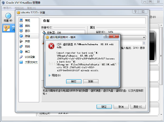 virtualbox导入vdi文件时出现以下的问题: