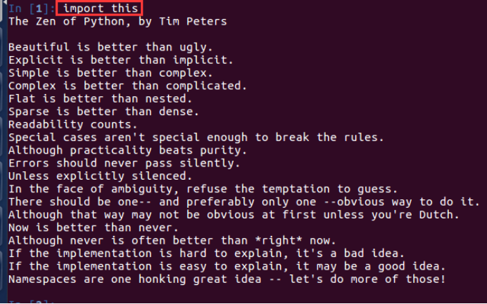 import this 就会出现介绍Python语言设计理念的英文介绍