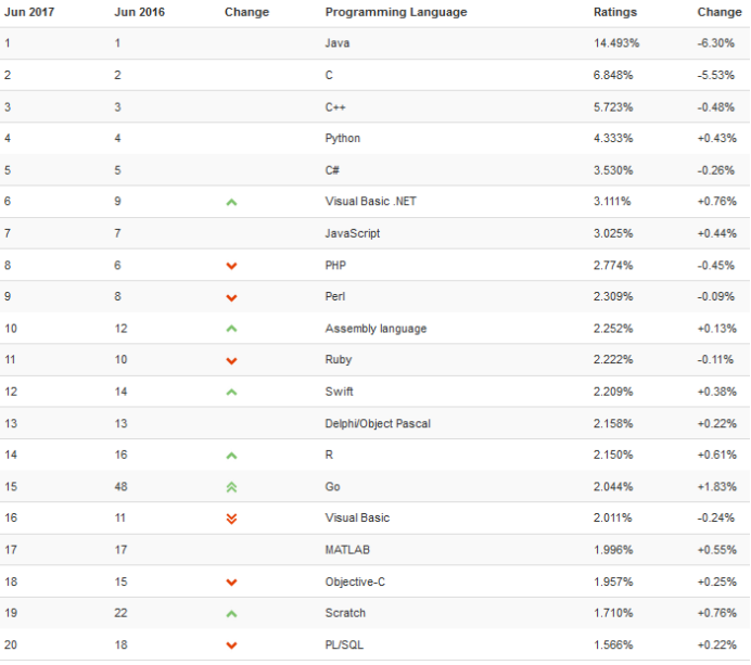 2017年6月份 编程语言流行排行榜