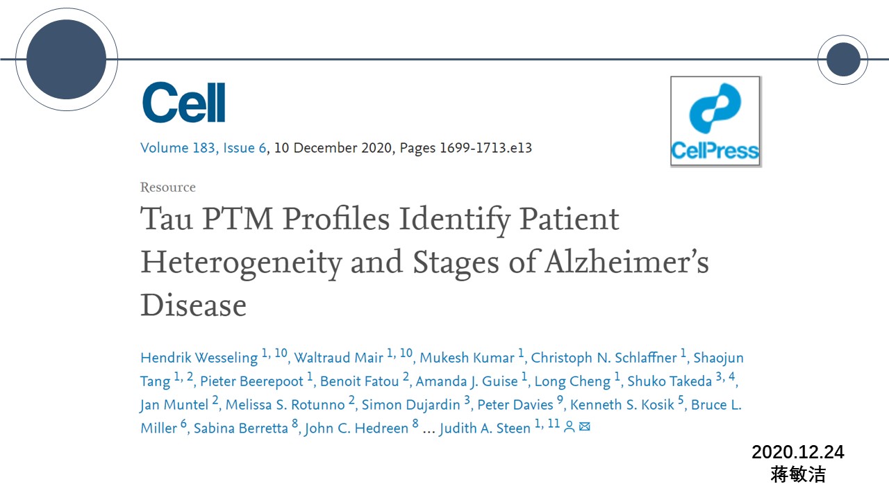 20201224-蒋敏洁-Tau PTM Profiles Identify Patient Heterogeneity and Stages of Alzheimer's Disease