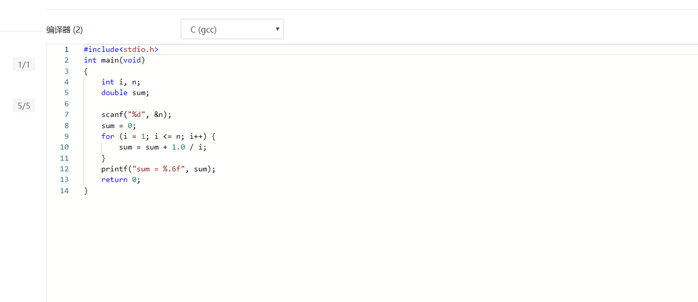 -部分正确:for循环语句中忘记了是双精度浮点 吧“1.0”写成了“1”