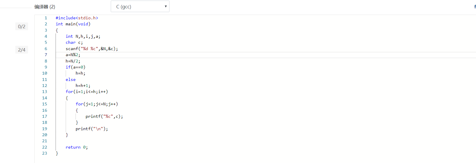 -scanf("%d %c",&N,&c);写成了scanf("%d %c",N,c);