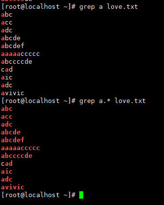 如果要搜.*的话,要带双引号".*",否则会把程序下的所有文件都搜出来,因为.*会被shell掳走,变成过滤该路径下的所有文件和love.txt文件的内容