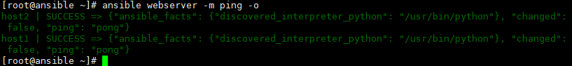 ansible webserver -m ping -o