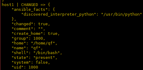 ansible主机清单 调用user模块 -a属性 '用户名字name=qf 状态state=创建'