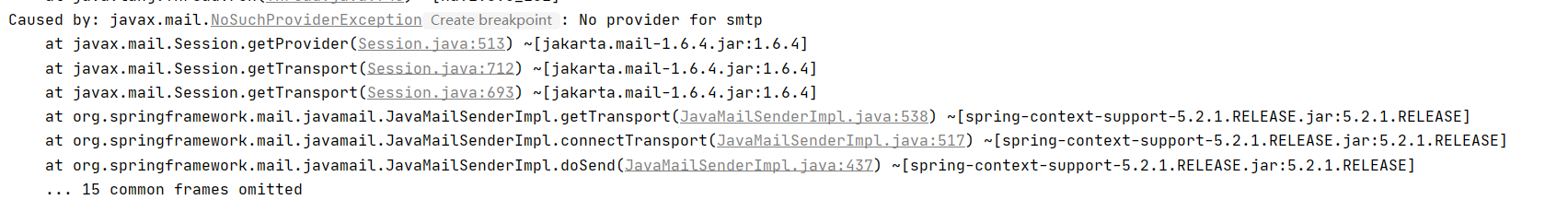 今天在使用springboot发送邮件时报错no provider for smtp