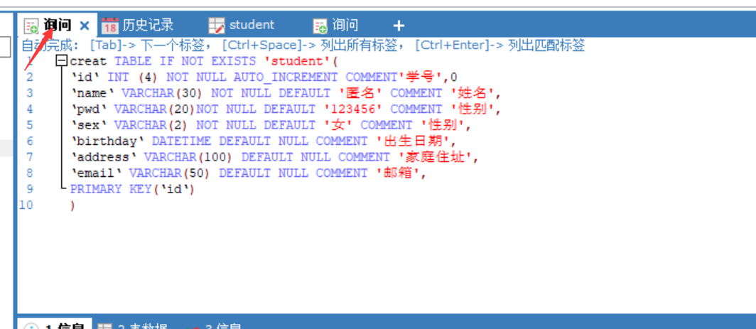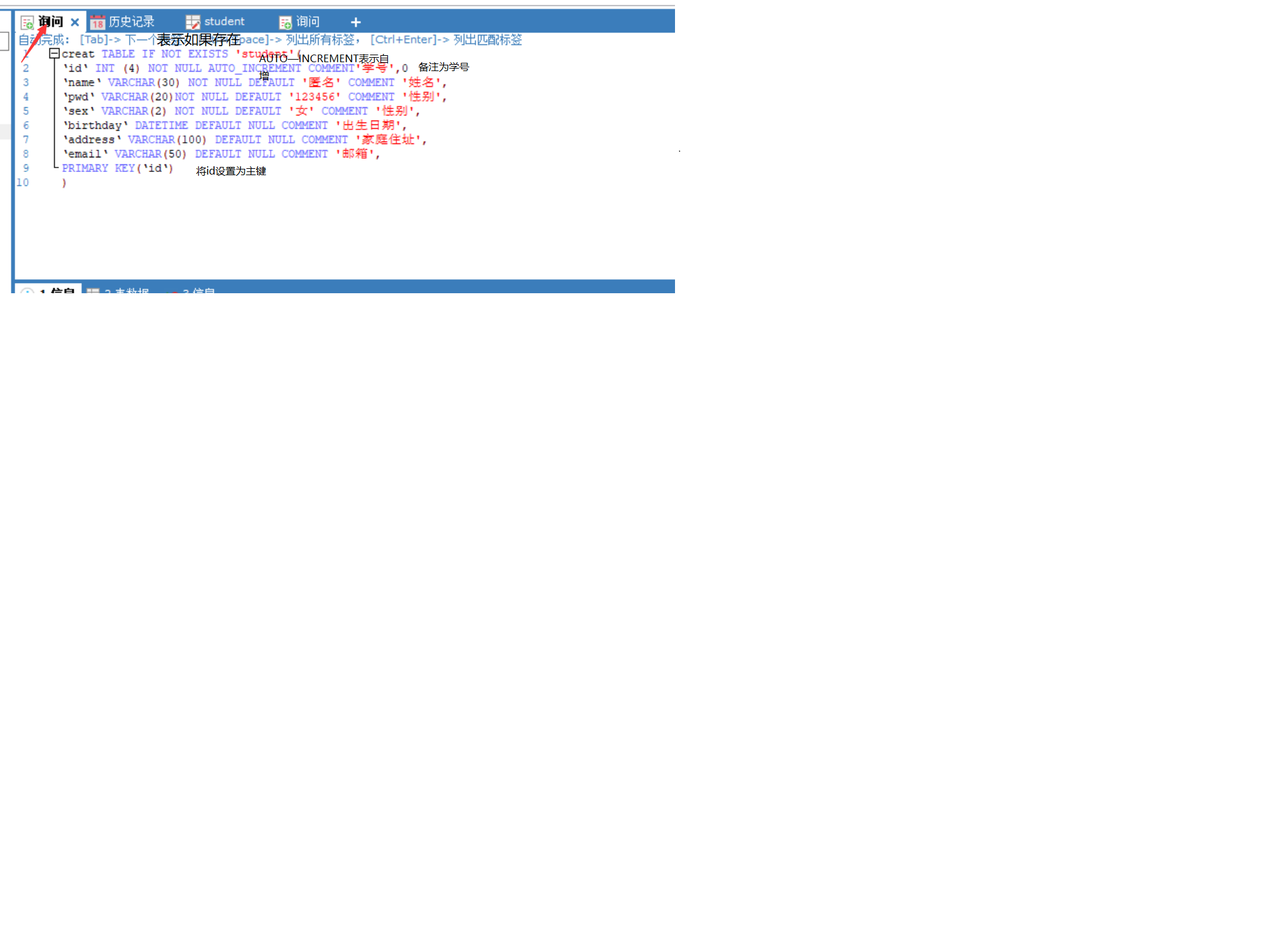 PRIMARY KEY表示主键,一般一个表只有唯一一个主键