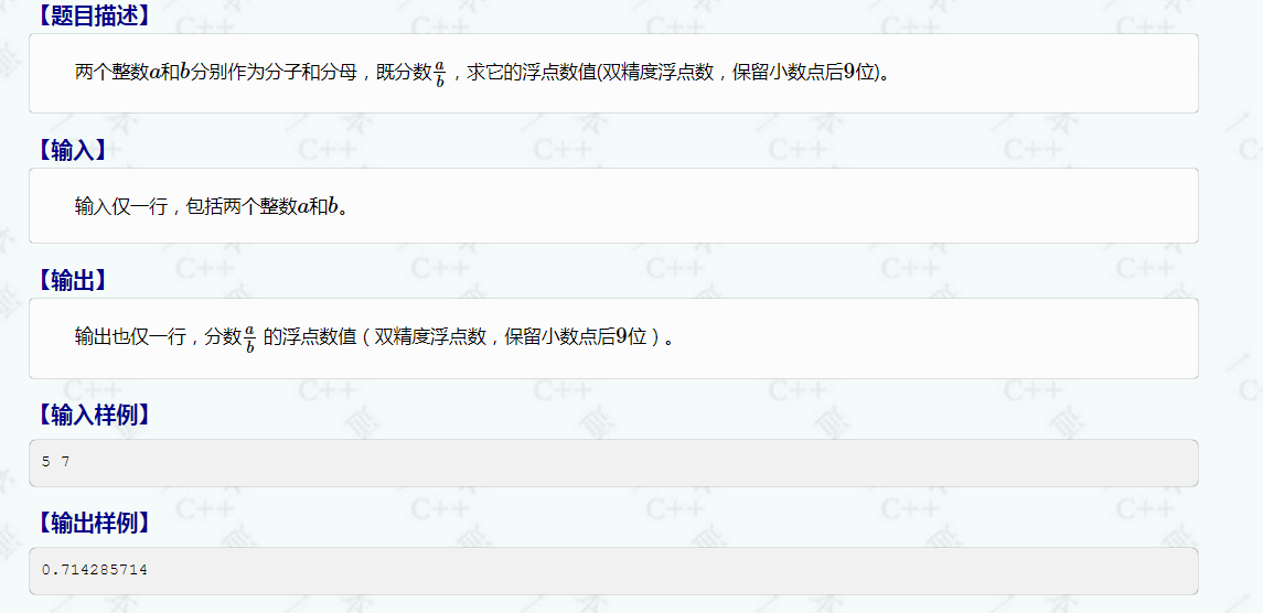 #include<cstdio> using namespace std; int main() { double a,b; scanf("%lf%lf",&a,&b); printf("%.9lf",a/b); return 0; }