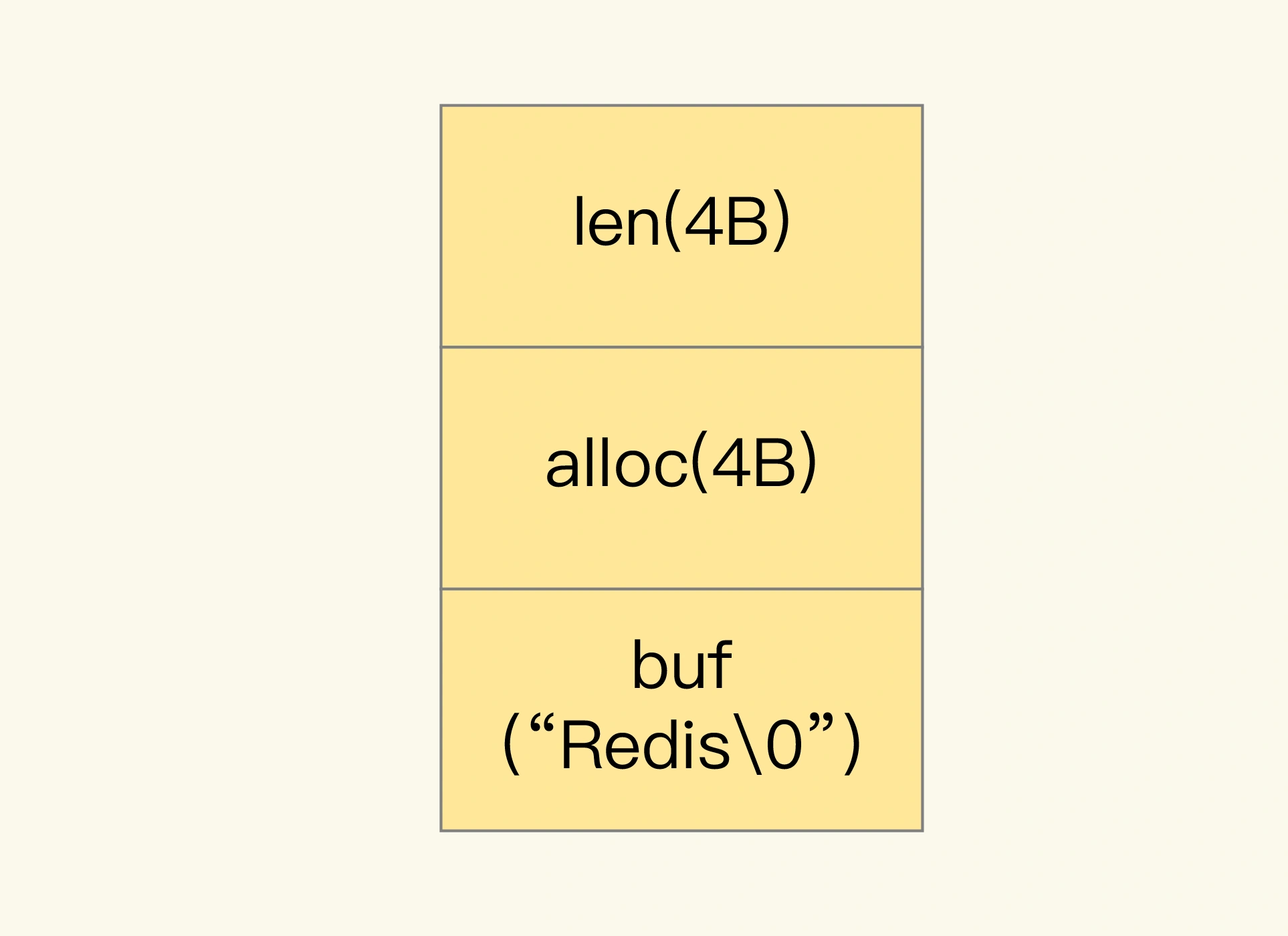- buf:字节数组,保存实际数据。为了表示字节数组的结束,Redis 会自动在数组最后加一个“\0”,这就会额外占用 1 个字节的开销。
