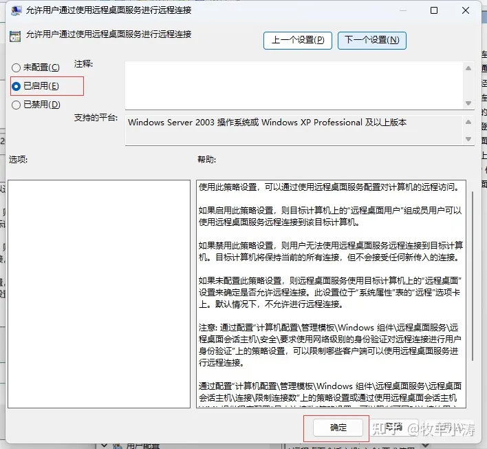 右键 允许用户通过使用远程桌面服务进行远程连接 编辑