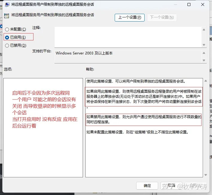 右键 将远程桌面服务用户限制到单独的远程桌面服务会话 编辑