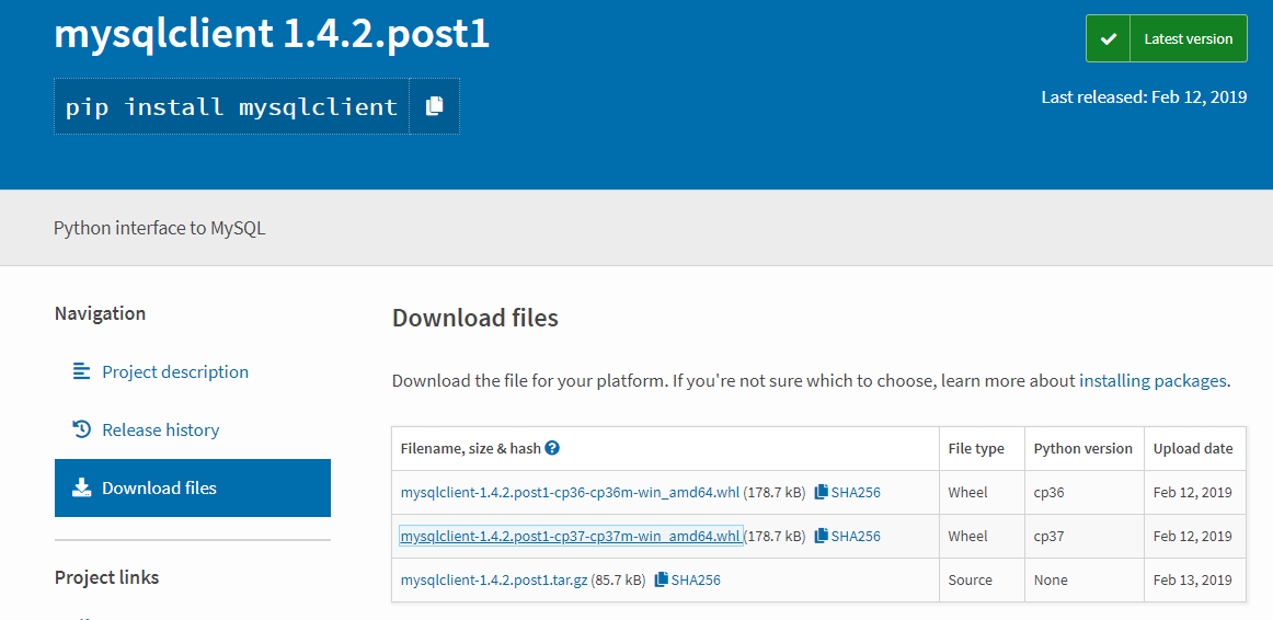 pip install mysqlclient-1.4.2.post1-cp37-cp37m-win_amd64.whl